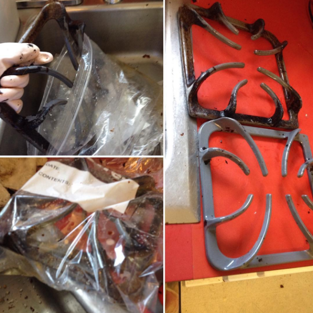 Αν η ηλεκτρική κουζίνα σας έχει τέτοιου τύπου εστίες και δεν ξέρετε πώς να αφαιρέσετε τη σκουριά που μαζεύουν, το κόλπο είναι ένα: Τα κλείνετε σε πλαστικές σφραγιζόμενες σακούλες και τα αφήνετε να μουλιάσουν σε αμμωνία στον νεροχύτη για ένα βράδυ.