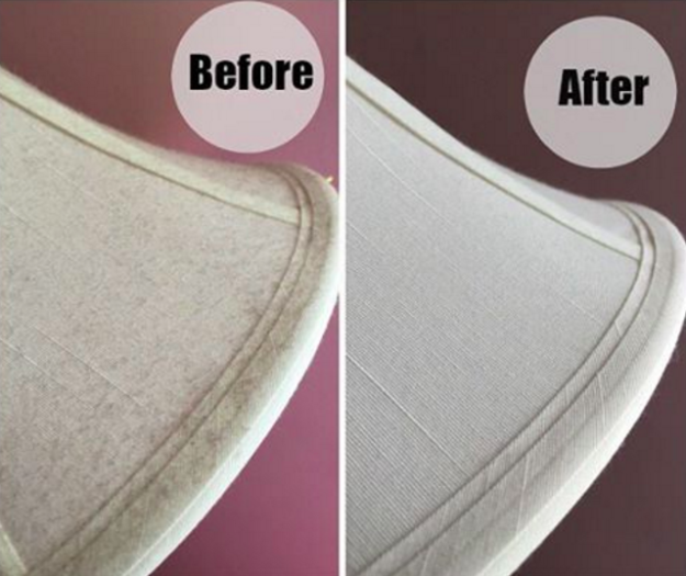 Το ρολό με το αυτοκόλλητο που χρησιμοποιούμε όσοι έχουμε ζωάκια στο σπίτι για να αφαιρούμε τις τρίχες τους από τα ρούχα, είναι εξαιρετικά χρήσιμο και για να ξεσκονίζουμε υφασμάτινες επιφάνειες όπως τα «καπέλα» των φωτιστικών.