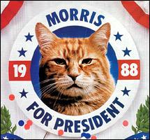 Ο Morris ο γάτος είναι ένας θρύλος στην Αμερική. Αφού διασώθηκε το 1965 από ένα καταφύγιο ζώων, 20 λεπτά πριν θανατωθεί, ο Morris έγινε ο πρωταγωνιστής πολλών ταινιών, ήρωας βιβλίων, και επίσημος «πρεσβευτής» της γατοτροφής «9 Lives». Έκτοτε, η αυτοκρατορία του έχει συνεχιστεί από άλλους δύο διαδόχους-Morris. O Morris o Β’, λοιπόν, έβαλε σκοπό να καταργήσει την πρωτοκαθεδρία των σκύλων στον Λευκό Οίκο. Το 1988, οι ιδιοκτήτες του τον έθεσαν υποψήφιο για να βγει Πρόεδρος των ΗΠΑ, κάτι που επανέλαβαν και το 1992. Το όνομα του δημοφιλούς γάτου ήταν πιο γνωστό στους ψηφοφόρους από αυτά των ανθρώπων-υποψηφίων. Ευτυχώς, όμως, για τα σκυλιά, -και δυστυχώς για τον υπόλοιπο πλανήτη- ο νόμος των ΗΠΑ δεν επιτρέπει στους Αμερικανούς να κυβερνηθούν από τετράποδα.