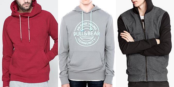 Από αριστερά προς τα δεξιά: Kόκκινο φούτερ με κουκούλα από τα Zara (25€ από εδώ), γκρι φούτερ από τα Pull and Bear με logo (12€ από εδώ), Φούτερ-τζάκετ με πλαϊνές τσέπες σε γκρι/μαύρο χρώμα από τα H&M (24€ από εδώ).