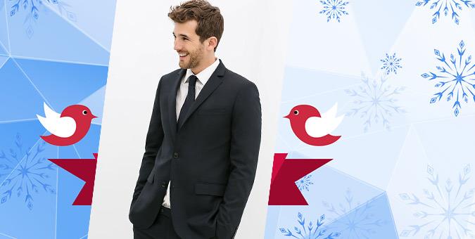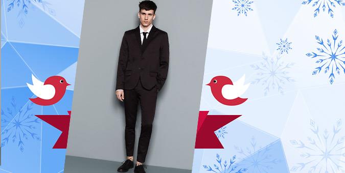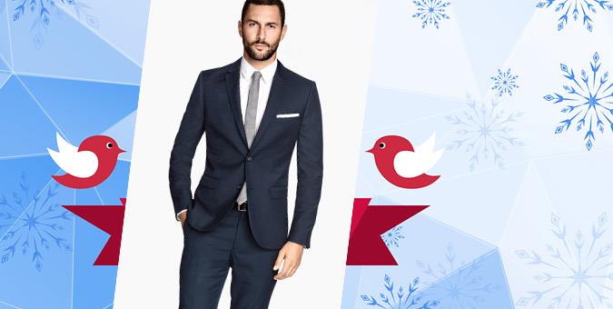 Κοστούμι slim fit από το H&M Τιμή: 59,99€ το σακάκι και 29,99€ το παντελόνι (90€ το σύνολο) Θα το βρείτε στα καταστήματα H&M Κομψό και διακριτικό, σε δύο χρώματα (μαύρο και μπλε σκούρο, αν θέλετε να ξεχωρίζετε από την κυριαρχία του μαύρου στο ρεβεγιόν) και με σύνθεση από πολυεστέρα, βισκόζη και μαλλί.