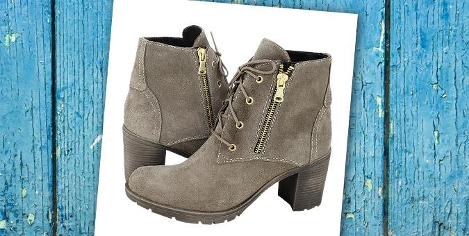 Γυναικεία Καστόρινα μποτάκια Tabarre Τιμή: 65€ (από 79€) Θα τα αγοράσετε online από εδώ ή θα τα βρείτε στα καταστήματα Gianna Kazakou Σούπερ στιλάτα, casual μποτάκια από καστόρι με δερμάτινη φόδρα, συνθετική σόλα και τακούνι 8 εκατοστών. Διατίθενται, εκτός από το χρώμα της φωτογραφίας και σε μαύρο και μπλε.