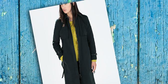Για τις κυρίες Μακρύ παλτό με ζώνη από το Zara Τιμή: 49,99€ (από 89,95€) Θα το αγοράσετε online από εδώ ή θα το βρείτε στα καταστήματα Zara Σε πρωτότυπη απόχρωση του σκούρου πράσινου, με μήκος που φτάνει ως το γόνατο και «κρυφό» φερμουάρ για να σας κρατά ζεστή και στιλάτη.
