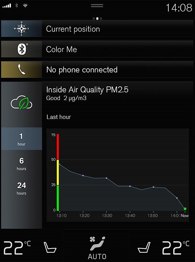 Οι οδηγοί των μοντέλων Volvo τα οποία εξοπλίζονται με τη νέα τεχνολογία μπορούν επίσης να χρησιμοποιούν την εφαρμογή Volvo On Call για smartphone, ώστε να προγραμματίζουν εύκολα έναν έξτρα καθαρισμό της καμπίνας πριν ξεκινήσουν για τη διαδρομή τους. Αφού ολοκληρωθεί ο καθαρισμός, η εφαρμογή πληροφορεί τους οδηγούς για το πραγματικό επίπεδο των σωματιδίων PM2.5 στο εσωτερικό του αυτοκινήτου.