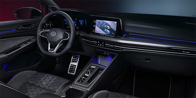 Στο εσωτερικό, ξεχωρίζουν το σπορ τιμόνι με χειριστήρια αφής και διάτρητο δέρμα, τα “top sport” καθίσματα εμπρός με ενσωματωμένα προσκέφαλα, η επένδυση με ύφασμα/ArtVelours microfleece και λογότυπο R, η επένδυση της οροφής σε μαύρο χρώμα, τα πεντάλ με επένδυση αλουμινίου και ειδικά γραφικά R στην οθόνη του ψηφιακού πίνακα οργάνων Digital Cockpit Pro.
