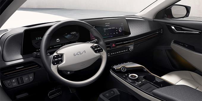 Όπως αρμόζει σε ένα ξεχωριστό ηλεκτρικό αυτοκίνητο, ο εσωτερικός σχεδιασμός ευνοείται από την ειδική πλατφόρμα E-GMP της Kia, η οποία προσφέρει αυξημένο χώρο σε σύγκριση με τα προηγούμενα EV της μάρκας. Ο εσωτερικός σχεδιασμός του EV6 χαρακτηρίζεται από μία καινοτόμο εκμετάλλευση των χώρων, δημιουργώντας μια μοναδική εμπειρία παραμονής στην καμπίνα.