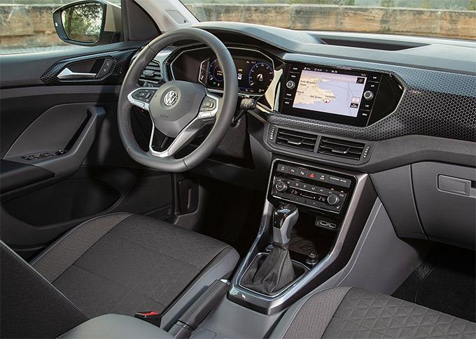 Το T-Cross θα είναι διαθέσιμο με ένα ψηφιακό ταμπλό που περιλαμβάνει μιας νέας γενιάς οθόνη αφής 8,0 ιντσών και αν είναι επιθυμητό έναν ψηφιακό πίνακα οργάνων. Και οι δύο οθόνες είναι τοποθετημένες στον ίδιο οπτικό άξονα, με αποτέλεσμα να είναι ορατές από όλους τους επιβάτες. Τα χειριστήρια είναι γενικά διαισθητικά, ενώ μια ασύρματη θέση φόρτισης εξασφαλίζει την απρόσκοπτη λειτουργία των smartphones. Ήδη από τον βασικό εξοπλισμό διαθέσιμες 4 θύρες USB.