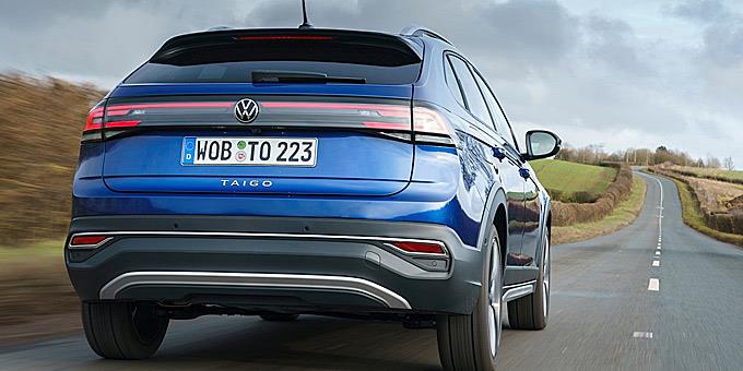 Η κουπέ σιλουέτα του Taigo ξεχωρίζει με την πρώτη ματιά, με την έντονα κεκλιμένη προς τα εμπρός κολόνα C. Η πλάγια όψη χαρακτηρίζεται από ακριβείς, καλοσχεδιασμένες γραμμές, ενώ οι τονισμένοι θόλοι των τροχών επιβεβαιώνουν τον crossover χαρακτήρα του μοντέλου. Οι συμπαγείς διαστάσεις (μήκος 4,266 μέτρα, ύψος 1,518 μ., πλάτος 1,757 μ.) κρύβουν επιμελώς ένα γενναιόδωρο μεταξόνιο (2,554 μ.), που εξασφαλίζει άφθονους χώρους για πέντε επιβάτες ενώ και ο διαθέσιμος όγκος για τις αποσκευές είναι εντυπωσιακός, στα 440 λίτρα.