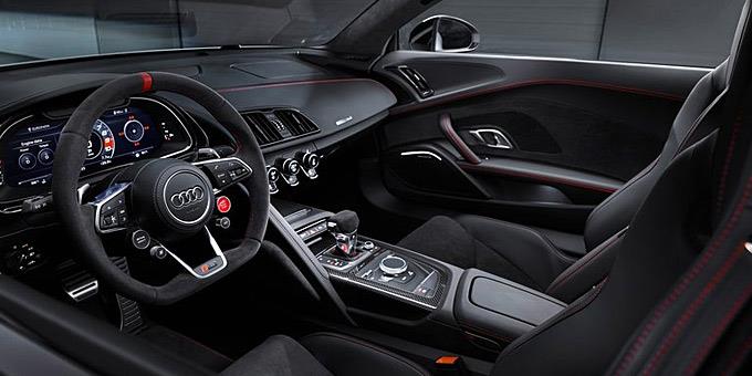 Συγκεκριμένα, αυτό σημαίνει: 602 ίπποι από 10 κυλίνδρους, 5,2 λίτρα κυβισμού και 413 Νm ροπής. Ως αποτέλεσμα, η νέα R8 GT επιταχύνει στα 100 χλμ./ώρα σε 3,4 ΄΄, πιάνει τα 200 χλμ./ώρα σε μόλις 10,1΄΄ και φτάνει σε τελική ταχύτητα στη πίστα έως και 320 χλμ./ώρα.