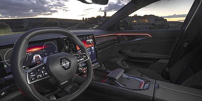 Το high-tech cockpit είναι ανεπτυγμένο γύρω από την μεγάλη οθόνη του συστήματος OpenR που συνδυάζει τον ψηφιακό πίνακα οργάνων 12.3" και την κάθετη οθόνη πολυμέσων 12". Η οθόνη του νέου Head Up Display των 9.3", που προβάλλεται πάνω στο παρμπρίζ, συμπληρώνει το συνολικό αριθμό οθονών του αυτοκινήτου.