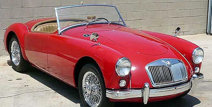 MGA 1959 Ακόμα ένα εντυπωσιακό sports car, αυτή τη φορά από την εταιρεία MG, το MGA είναι ένα διθέσιο roadster αυτοκίνητο, το οποίο κυκλοφόρησε τη δεκαετία του ’50 και αποτέλεσε την εξέλιξη του sport αυτοκινήτου της εταιρείας που συμμετείχε στο ράλι Le Mans το 1951. Οι ακτινωτές του ζάντες – σήμα κατατεθέν της εποχής, τα χαρακτηριστικά μπροστινά του φώτα, το ατρακτοειδές του σχήμα και ο μοντέρνος σχεδιασμός του, το κατατάσσουν αυτομάτως στα ομορφότερα μοντέλα της φίρμας.