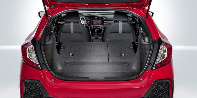 Το ρεζερβουάρ καυσίμου του Civic είναι τοποθετημένο σε νέα θέση, και το πάτωμα είναι χαμηλότερο συγκριτικά με του προηγούμενου μοντέλου. Σε συνδυασμό με τις βελτιώσεις στο πλαίσιο και την ανάρτηση, το κέντρο βάρους του νέου μοντέλου βρίσκεται 10 χιλ. χαμηλότερα. Ο χώρος αποσκευών παραμένει κορυφαίος σε χωρητικότητα (478 λίτρα), και χαρακτηρίζεται από την ευκολία πρόσβασης και την ευελιξία του. Τα διαιρούμενα 60:40 / αναδιπλούμενα πίσω καθίσματα, το χαμηλό ύψος φόρτωσης και το φαρδύ άνοιγμα του πορτμπαγκάζ (1.120 χιλ.) σε συνδυασμό με το επίπεδο πάτωμα διευκολύνουν τη φόρτωση αντικειμένων μεγάλου μήκους, πλάτους και βάρους. Ένας κρυφός, υποδαπέδιος θάλαμος προσφέρει έναν πρόσθετο, ασφαλή αποθηκευτικό χώρο (εξαιρούνται τα μοντέλα Sport). Η δεύτερη γενιά του συστήματος ενημέρωσης / ψυχαγωγίας και συνδεσιμότητας Connect 2 περιλαμβάνει τις εφαρμογές Apple CarPlay και Android Auto.