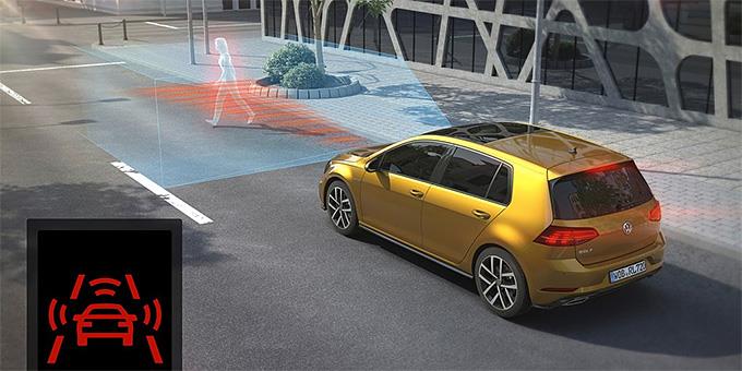 Το σύστημα City Emergency Braking, το οποίο ανάλογα και με το μοντέλο, συμπεριλαμβάνεται στο σύστημα ελέγχου εμπρόσθιας κυκλοφορίας Front Assist, υποστηρίζει τον οδηγό σε σχετικά χαμηλές ταχύτητες. Ένα εμπόδιο που δεν θα γινόταν ενδεχομένως αντιληπτό κατά την κίνηση στην πόλη με ταχύτητες μέχρι τα 30 χλμ./ώρα, αναγνωρίζεται από το ραντάρ και ανάλογα με το μέγεθος του κινδύνου, το σύστημα φρενάρει αυτόματα. Ιδανικά, οι οπίσθιες συγκρούσεις θα μπορούσαν να αποφευχθούν εντελώς.