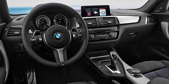 Περνώντας στο εσωτερικό της ανανεωμένης BMW Σειράς 1, αρκετές λεπτομέρειες προάγουν αυτή την αίσθηση αποκλειστικότητας και υψηλής ποιότητας της καμπίνας. Υιοθετώντας μία καθαρή, στιλάτη σχεδίαση, το ταμπλό γίνεται πιο οδηγοκεντρικό. Ο πίνακας οργάνων σε black-panel έχει επανασχεδιαστεί. Η χρήση αντίθετης ραφής προσδίδει μία σοφιστικέ νότα. Η κεντρική κονσόλα με χειριστήρια για τα συστήματα ήχου και κλιματισμού (A/C), έχει στιλπνό μαύρο φινίρισμα. Οι ποτηροθήκες εξαφανίζονται διακριτικά πίσω από ένα συρόμενο καπάκι, ενώ οι διακόπτες των παραθύρων στις πόρτες έχουν χρωμιωμένο περίγραμμα. Χάρη στη σχολαστική προσοχή των σχεδιαστών στη λεπτομέρεια, το ντουλαπάκι εντάσσεται αρμονικά στο περιβάλλον του εσωτερικού.