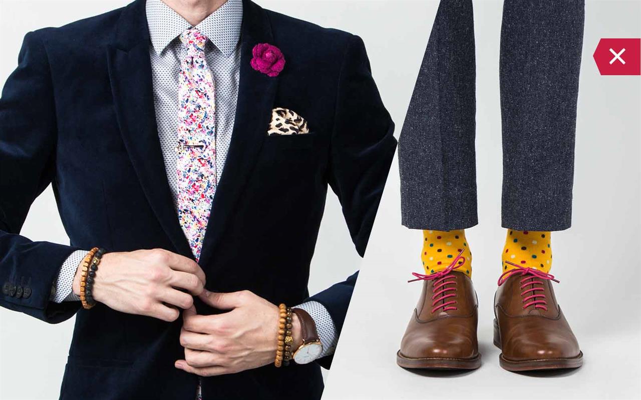 Οι παρδαλές κάλτσες είναι ωραίες, αρκεί να τις φορέσεις με κάτι που ταιριάζει στην περίσταση: μια βερμούδα, ένα τζιν παντελόνι, κάτι κάζουαλ τελοσπάντων. ΟΧΙ με το κουστούμι που θα εμφανιστείς στον γάμο, ανεξαρτήτως του ποιος παντρεύεται.