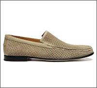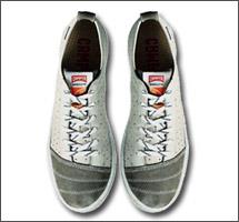 * Συνεχίζουμε στα Camper. Δεν πάμε, όμως, πολύ μακριά. Πληκτρολογούμε την ηλεκτρονική διεύθυνση της εταιρίας και ερχόμαστε αντιμέτωποι με εκατοντάδες πρωτότυπα και διασκεδαστικά (χαρακτηριστικό των Clarks) σχέδια για την θερινή σεζόν. Επηρεαζόμαστε από την παιχνιδιάρικη διάθεση και επιλέγουμε για τον άνδρα τα Imar της φωτογραφίας. Σε ναυτικό στυλ με κορδόνια και περφορέ γκρι δέρμα, με πλαστική αντιολισθητική σόλα, τα συγκεκριμένα παπούτσια σχεδιάστηκαν για την 25η επέτειο των πιο αναγνωρισμένων μεσογειακών αγώνων «Kings Cup Sailing Race». Υπάρχουν νούμερα από 39 μέχρι και 46, η τιμή τους είναι στα 130 ευρώ και η αγορά τους γίνεται εύκολα και γρήγορα on-line.