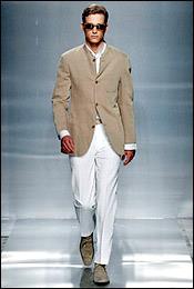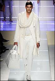 Εδώ και αρκετό καιρό, επιμένει ο Massimiliano Giornetti, σχεδιαστής της ανδρικής σειράς του Ferragamo, πως ο σύγχρονος άνδρας δεν δίνει πια σημασία στους παραδοσιακούς κώδικες που υπαγορεύουν τι πρέπει να φορά κανείς τη μέρα και τι τη νύχτα (καθόλου παράλογο αν σκεφτεί κανείς πως με τα 12ωρα που «χτυπούν» οι περισσότεροι άνδρες δουλεύοντας σήμερα έχουν κάνει τη νύχτα μέρα). Και αυτό ακριβώς θέλει να «περάσει» με την ανοιξιάτικη συλλογή του, που δεν στερείται πολυτελών υφασμάτων, έντονων χρωματικών αποχρώσεων και προκλητικών συχνά αξεσουάρ σε οποιαδήποτε ready-to-go εμφάνιση. Επηρεασμένος, σίγουρα, από την Ανατολή, ο Giornetti πρόσθεσε εξωτικές λεπτομέρειες στα πιο καθημερινά ρούχα του, πρότεινε total orange ή total fuchsia σύνολα, και ανέδειξε τα πουκάμισά του με μεταξωτά βολάν σε σχήμα λουλουδιών.
