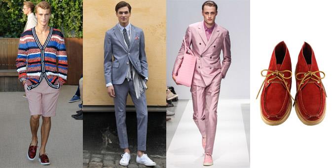 Τις πιο ζεστές ημέρες φορέστε την παστέλ βερμούδα σας, χωρίς να το σκεφτείτε δεύτερη φορά, και ταιριάξτε την με ριγέ t-shirt –η ρίγα είναι μία ακόμα τάση που θα επικρατήσει φέτος στο casual ντύσιμο. Στο δε business, τα γκρι και τα navy κοστούμια αποτελούν πάντα ασφαλή επιλογή, εκτός κι αν έχετε το θάρρος να δοκιμάσετε ένα πιο ανοιχτόχρωμο, σε lime ή σε φούξια, τα οποία επίσης προτάθηκαν από τους σχεδιαστές για φέτος.