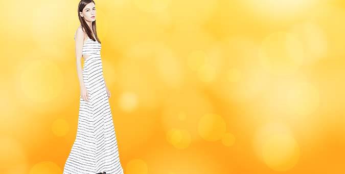 Μάξι φόρεμα Bershka Τιμή: 24,99€ Θα το αγοράσετε online από εδώ ή θα το βρείτε στα καταστήματα Bershka (δείτε τις διευθύνσεις εδώ) Για σικάτες απογευματινές εμφανίσεις στο νησί, επιλέξαμε αυτό το μακρύ λευκό φόρεμα με τις μαύρες ρίγες, που ταιριάζει γάντι στο λευκό των Κυκλάδων. Η σύνθεσή του είναι 92% πολυεστέρας και 8% ελαστάνη, ενώ τα τολμηρά κοψίματά του προσδίδουν έξτρα δόση θηλυκότητας στις εμφανίσεις σας.