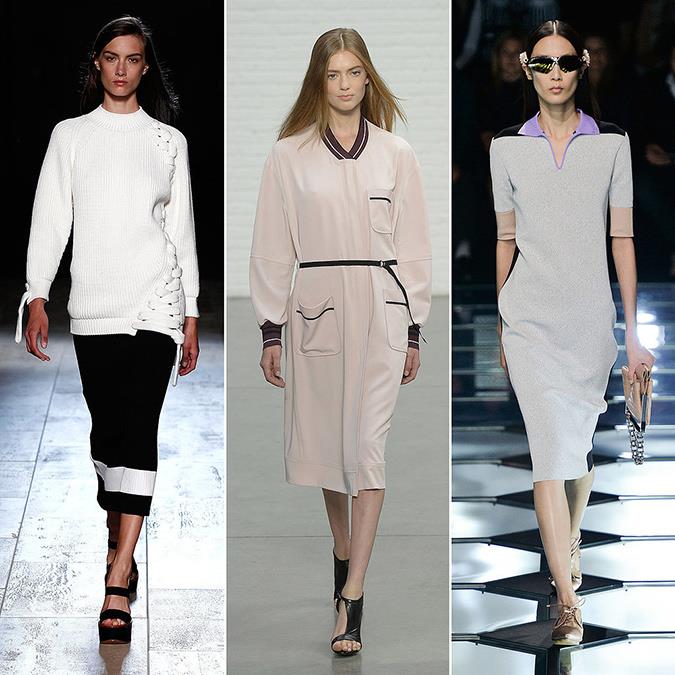 Σπορ μινιμαλισμός Μπορεί ο Alexander Wang και άλλοι σχεδιαστές να προτείνουν τα τελευταία χρόνια total sport εμφανίσεις, αλλά για την άνοιξη του 2015 στις πασαρέλες κυριάρχησαν οι sport λεπτομέρειες που κάνουν την διαφορά στα πιο θηλυκά λουκ. Κορδόνια, φερμουάρ, ασπρόμαυρες ρίγες και περικάρπια συνδυάζονται έξυπνα με φορέματα και κοψίματα που δεν παραπέμπουν καθόλου σε αθλητικό στυλ, και το αποτέλεσμα είναι εντυπωσιακό.