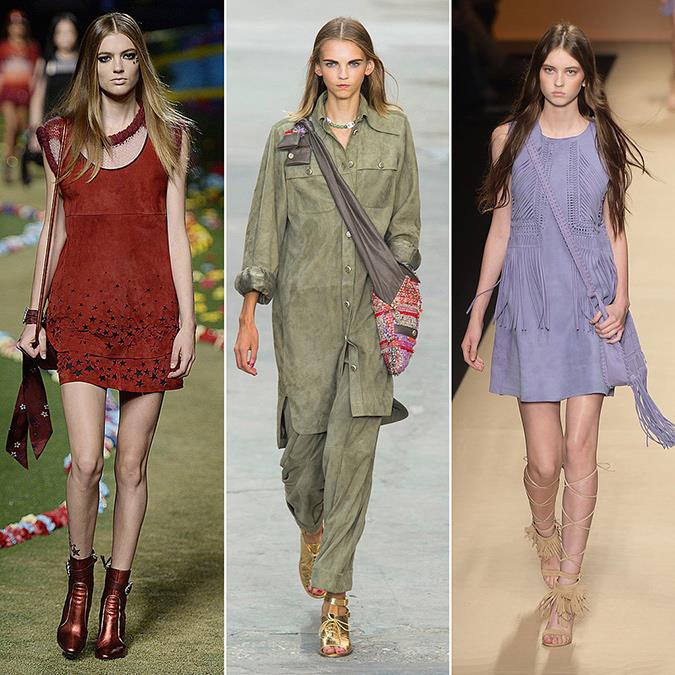 Μονόχρωμα καρό, τολμηρές ρίγες, χρωματιστά σουέντ και άλλες ενδιαφέρουσες προτάσεις από τις πασαρέλες για την μόδα της άνοιξης του 2015.