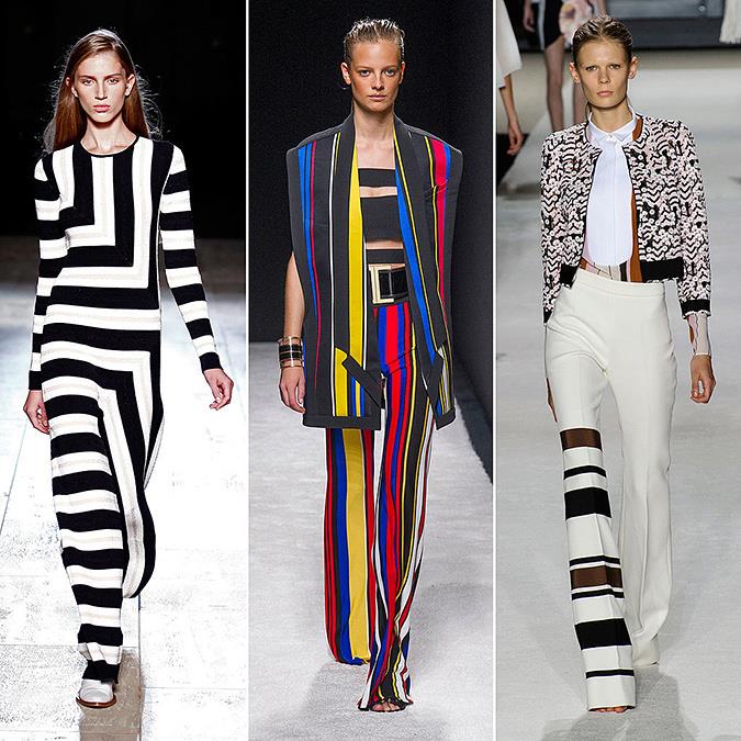 Τολμηρές ρίγες Τις βλέπουμε στις πασαρέλες κάθε άνοιξη, φέτος όμως παίζουν με την πρωτοτυπία: Ρίγες σε αναπάντεχα σημεία, ή σε τμήματα μόνο των ρούχων, ρίγες σε τολμηρά χρώματα και ρίγες που αλλάζουν κατευθύνσεις, για να μην είναι παράλληλες μεταξύ τους.