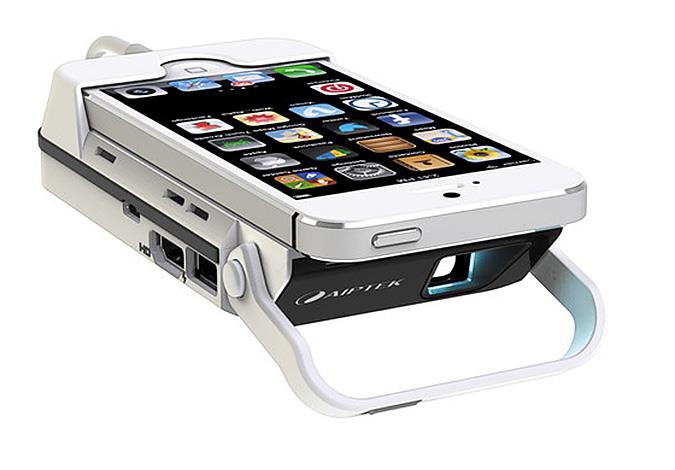 Aiptek MobileCinema i55 Pico Projector Το MobileCinema i55 της Aiptek είναι ένας φορητός projector για το iPhone 5/5s/6 με δυνατότητα αναπαραγωγής βίντεο αλλά και φωτογραφιών σε “οθόνη” μέχρι και 60’’. Με τη βοήθειά του, μπορείτε να προβάλετε media περιεχόμενο από το iPhone με φωτεινότητα 50 ANSI lumens, ενώ το DLP chip που ενσωματώνει, προσφέρει πλούσια χρώματα και αντίθεση χρωμάτων 1000:1. Ενσωματώνει επίσης είσοδο HDMI για να συνδέσετε σε αυτόν οποιαδήποτε άλλη συσκευή εικόνας (π.χ. media player). Το Aiptek MobileCinema i55 μπορεί παράλληλα να χρησιμοποιηθεί και ως power bank, “δανείζοντας” την μπαταρία του (3000mAh Li‐polymer) στο iPhone και επεκτείνοντας την αυτονομία του smartphone μέχρι και 2 ώρες. Τιμή: €220