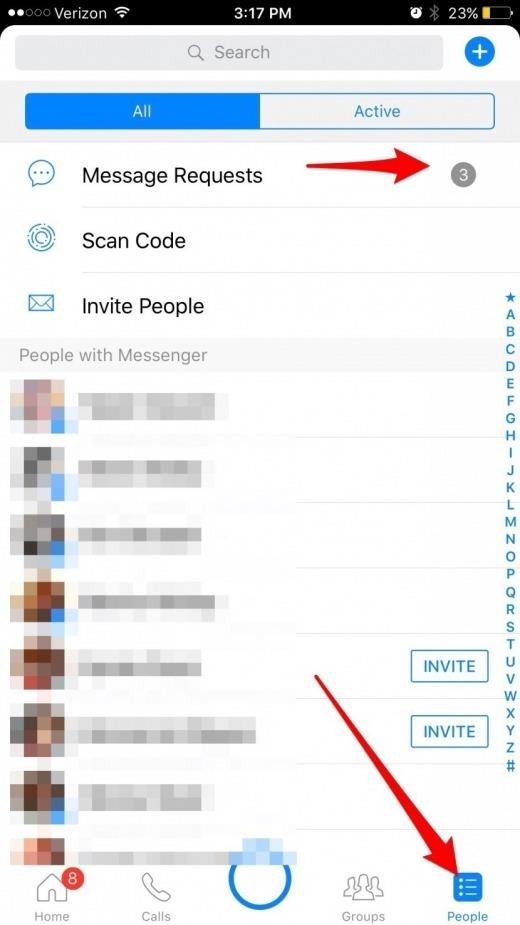 Το Facebook στέλνει μηνύματα από άτομα τα οποία δεν είστε φίλοι σε ένα συγκεκριμένο φάκελο τύπου spam. Κάποιες φορές σας στέλνει ειδοποιήσεις ότι κάποιος σας έστειλε μήνυμα, άλλες όχι. Για να δείτε τα «μπλοκαρισμένα» αυτά μηνύματα επιλέξτε είτε Αιτήματα Μηνυμάτων από το εικονίδιο δίπλα στα εισερχόμενα στον browser είτε επιλέγοντας People- Message Requests από τις ρυθμίσεις της εφαρμογής του Messenger.