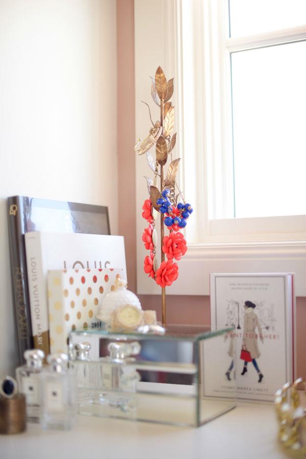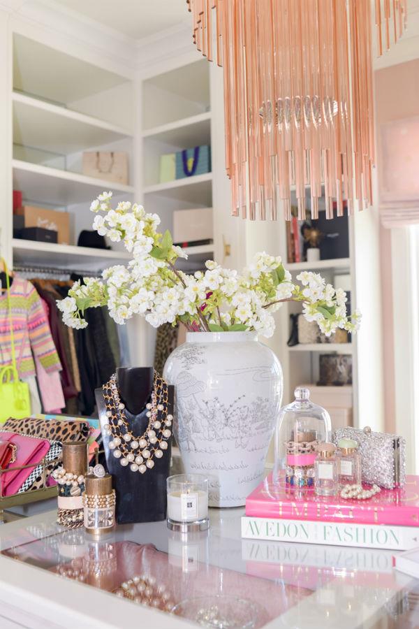 Αξεσουάρ, βιβλία μόδας, κουτιά παπουτσιών που πολλές φορές είναι πολύ χρήσιμα για την αποθήκευση αντικειμένων, που δεν χρησιμοποιούμε συχνά και δίσκοι, στους οποίους μπορούν να τοποθετηθούν αρώματα, γυαλιά ηλίου κλπ. μπορούν χρησιμεύσουν στη διακόσμηση, όπως και μια επιτραπέζια λάμπα. Απαραίτητο φυσικά κι ένα βάζο με τα αγαπημένα σας φρέσκα λουλούδια.
