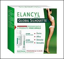 Η Elancyl σε συνεργασία με τα διατροφολογικά εργαστήρια της Pierre Fabre δημιούργησαν ένα ολοκληρωμένο πρόγραμμα αδυνατίσματος, το οποίο εύκολα και υγιεινά σας χαρίζει σμιλευμένο κορμί και κομψή σιλουέτα. Το Global Silhouette περιέχει 100% φυτικά συστατικά που εγγυώνται ότι αποτελεί τον πιο υγιεινό τρόπο αδυνατίσματος, ενώ έχει υπέροχη γεύση μήλου έτσι ώστε να αποτελεί μια ευχάριστη συνήθεια. Η πολλαπλή του δράση, που αποσυμφορίζει τον οργανισμό, σμιλεύει τη σιλουέτα και επαναδιαμορφώνει το περίγραμμα του σώματος, έχει αποδεδειγμένη αποτελεσματικότητα από τις πρώτες 14 ημέρες. Προσφέρει μείωση έως και 5,6 εκατοστών στη μέση και έως και 3,9 εκατοστών στην περιοχή των γοφών.
