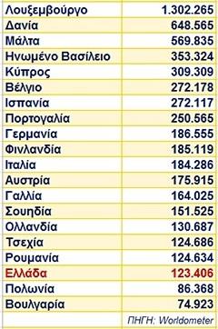 Όπως φαίνεται στον πιο κάτω πίνακα, η αναλογία στη χώρα μας είναι 123.406 τεστ ανά εκατομμύριο πληθυσμού. Η συγκεκριμένη επίδοση στέλνει τη χώρα μας στην τρίτη θέση από το τέλος του σχετικού πίνακα, με τελευταίες την Πολωνία και τη Βουλγαρία.