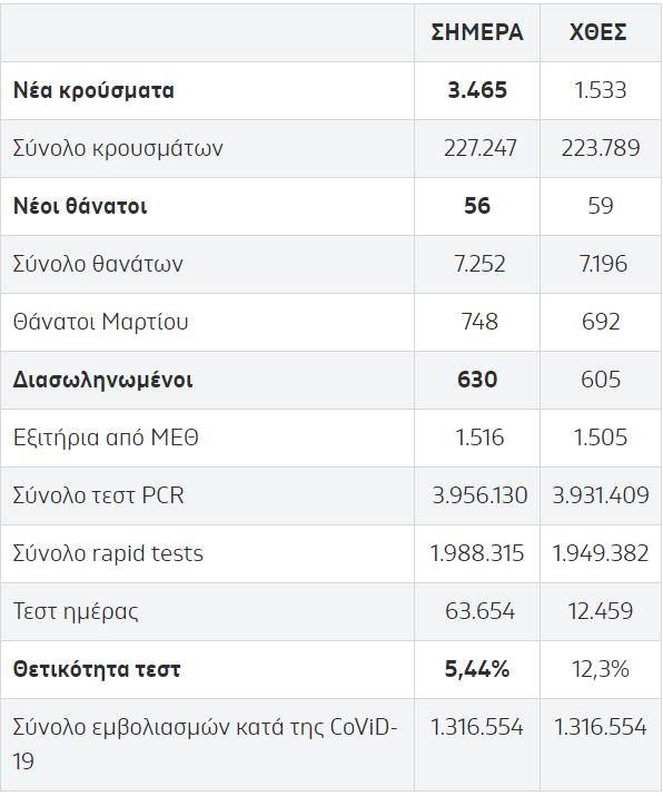 Λίγες ώρες μετά την είδηση για πιθανή σταδιακή άρση του λοκντάουν, τα σημερινά στοιχεία του του Εθνικού Οργανισμού Δημόσιας Υγείας έρχονται να μας προσγειώσουν στην θλιβερή πραγματικότητα, αποτυπώνοντας νέο ρεκόρ κρουσμάτων, 3.465 στον αριθμό, με τα 1.701 από αυτά στην Αττική.