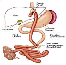 * Γαστρικό by-pass: Ή αλλιώς γαστρική παράκαμψη κατά Roux en-Y. Συνδυάζει τον περιορισμό τροφής με την μείωση της απορρόφησης των προσλαμβανόμενων θερμίδων. Κατά την επέμβαση το στομάχι διαχωρίζεται στο ανώτερο τμήμα του, έτσι ώστε να δημιουργείται ένα πολύ μικρότερο, το οποίο γεμίζει με ελάχιστη τροφή. Αυτό συνδέεται στην συνέχεια με το λεπτό έντερο τόσο ώστε να μην μπορούν τα λίπη να εισχωρούν σε άλλα σημεία στον οργανισμό.