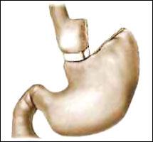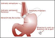 * Γαστρικός δακτύλιος: Όμοια λογική με την διαμερισματοποίηση. Γύρω από το στομάχι τοποθετείται δακτύλιος δημιουργώντας δύο διαμερίσματα, το άνω διαμέρισμα δημιουργεί αίσθημα πρόωρου κορεσμού. Ο δε δακτύλιος φέρει εσωτερικά ένα μπαλόνι που συνδέεται με βαλβίδα, η οποία τοποθετείται υποδόρια στην κοιλιά. Φουσκώνοντας το μπαλόνι με φυσιολογικό ορό αυξομειώνεται το εύρος του στομίου που χωρίζει τα διαμερίσματα.