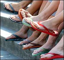 Σαγιονάρες και σανδάλια με σόλες από αφρώδες πλαστικό: Τα υποδήματα αυτά προσφέρουν ανεπαρκή στήριξη στην καμάρα του ποδιού, επιφέροντας πόνο στα πόδια, τους αστραγάλους και τα γόνατα.