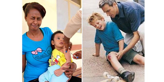 Βέβαια, ο τρόπος που αντιδρούμε σε κάποιο ερέθισμα ανεξάρτητα του πόσο επώδυνο είναι αυτό, εξαρτάται σε μεγάλο βαθμό από το πώς αντιδρούσε η μητέρα, ο πατέρας μας αλλά και το ευρύτερο συγγενικό περιβάλλον όπως φαίνεται στις παρακάτω φωτογραφίες.