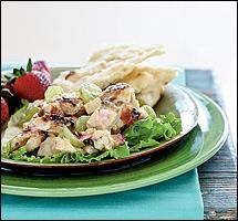 * Σαλάτα με κοτόπουλο: 16 φύλλα μαρουλιού, μισό κιλό στήθος κοτόπουλου, καρότα, πράσο, 2 κουταλιές της σούπας ντρέσινγκ σαλάτας με χαμηλά λιπαρά. Αφού κόψετε σε μικρά κομματάκια το στήθος κοτόπουλο, αναμείξτε με τα μαρουλόφυλλα και τα άλλα λαχανικά, προσθέστε το ντρέγινγκ και σερβίρετε.