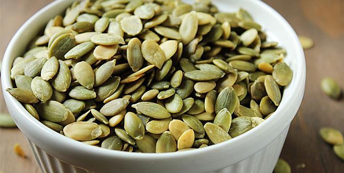 Κολοκυθόσποροι Ο γνωστός μας… πασατέμπος αποτελεί το πιο θρεπτικό κομμάτι της κολοκύθας και είναι πλούσιος σε ακόρεστα λιπαρά οξέα και λινολεϊκό οξύ. Η περιεκτικότητα του σε πρωτεΐνη υπολογίζεται στο 30-40%, ενώ έχει την μεγαλύτερη περιεκτικότητα σε σίδηρο από οποιοδήποτε άλλο σπόρο, συστατικό απαραίτητο για να δώσει ενέργεια στον οργανισμό. Περιέχει επίσης απαραίτητα μέταλλα όπως ψευδάργυρο, χαλκό, μαγνήσιο και μαγγάνικο, καθώς επίσης και βιταμίνες E, C, Κ και ορισμένες από τις βιταμίνες του συμπλέγματος Β. Ψήστε μια κούπα πασατέμπου με μισή κουταλιά του γλυκού πάπρικα, λίγο τσίλι και αλάτι και έχετε ένα εύκολο σνακ.