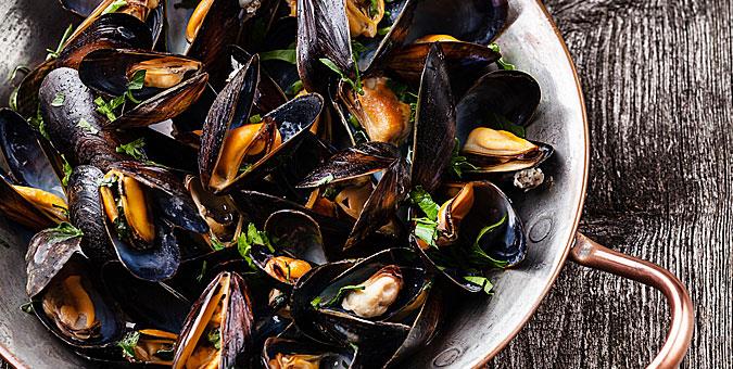 Μύδια Αυτή η θαλασσινή νοστιμιά είναι από τις πιο πλούσιες τροφές σε βιταμίνη Β12, που ευθύνεται για την καλή λειτουργία του εγκεφάλου. Την ίδια στιγμή, τα μύδια περιέχουν πολλά πολύτιμα ιχνοστοιχεία, όπως ψευδάργυρο, ιώδιο και σελήνιο.
