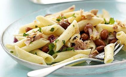 Υλικά:1 1/2 πακέτο πένες, 1 κονσέρβα καλαμπόκι βρασμένο, λίγη κάπαρη, 2-3 πιπεριές κόκκινες-κίτρινες, λίγες ελιές, 2 κονσέρβες τόνο σε νερό